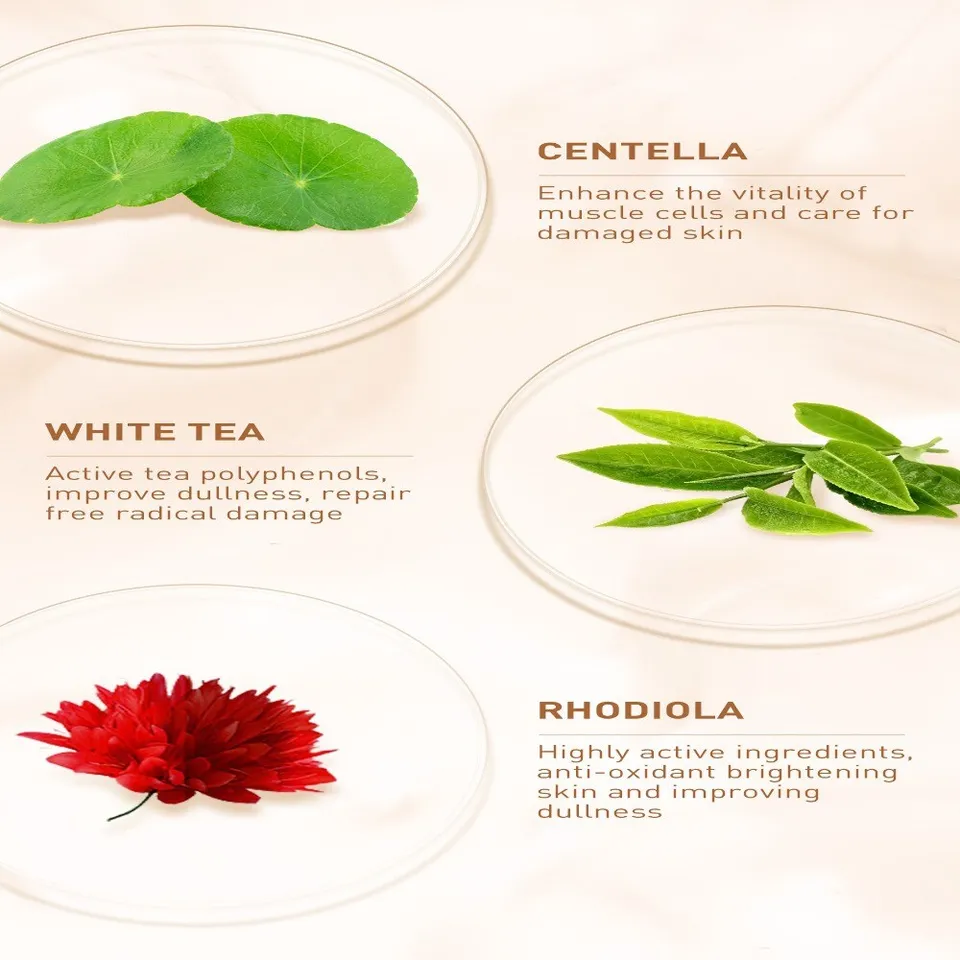 Ingredients: Centella Asiatica, glycerin, allantoin, low molecular weight heparin, carbomer, ginseng, white tea, rhodiola, etc